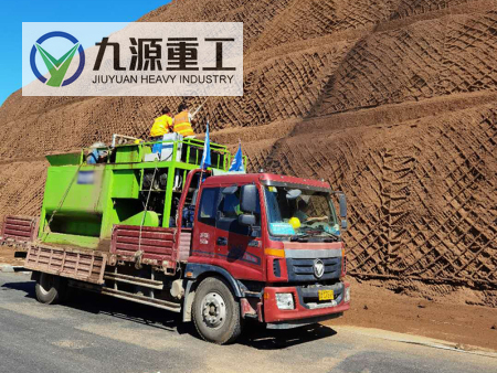噴播機(jī)是應(yīng)用于邊坡綠化的專業(yè)設(shè)備,通過本設(shè)備將土壤基質(zhì)、綠化草籽、保水劑、黏合劑、肥料等,在噴播機(jī)攪拌罐中與水混合成膠狀的漿液,用泥漿泵將其噴播于坡面上。由于漿液中含有保水材料、黏合材料、各種養(yǎng)分,在保證了植物生長(zhǎng)所需的水和其它營(yíng)養(yǎng)物質(zhì)來源的同時(shí)有效防止雨水沖刷對(duì)噴播材料的破壞,故而植物能夠健康、迅速地成長(zhǎng)。